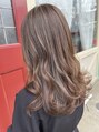 ハイライトを入れて全体的にも明るめのベージュ系カラーをのせています。細めにハイライトを入れているので大人の方にもオススメです。