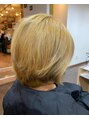 カットは首元をスッキリとみせるくびれショート。今回は元々ベースが明るかったのでそのまま5レベルのダークグレーでオンカラーしています。ベースが暗い方は一度ブリーチで明るくする必要があります。