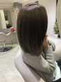 ワンレンベース。顔周りと、表面に少しだけ段を入れました。毛先はラインをぼかすようにカットして質感を柔らかくしました。カラーはラベンダーピンクでカラー。黄色味が抑えられツヤのあるキレイなピンクブラウンに。