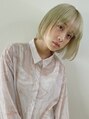 ダメージを抑えつつケアブリーチを2~3回し、淡いグリーンをオンカラー。メイクやファッションに合わせて派手色になりすぎない日常に溶け込むカラーをチョイス。カットはシンプルかつ顔まわりにデザインポイントを入れることで周りと差をつけるスタイルに。