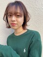 顎下2センチの長さに設定した切りっぱなしボブ。外ハネアレンジしやすい長さと重たすぎない束感カット◎調整しながらまとまりやすく切っていきます*