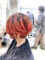 高彩度のバレンシアが映えるバレイヤージュショートボブ髪の毛の動かし方次第で筋感の表情が変わるので飽きさせず、色落ちしても金髪にならないでオレンジベージュになるので金金が苦手な方にもオススメです