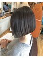 普通の茶色に飽きた方や色味で遊びたい方におすすめなカラーです。肩上の前下がりボブなのでお手入れもしやすく朝のスタイリングも楽チンです。