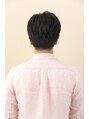 多毛、硬毛で少しでも伸びてきたらサイドが膨らんでしまい、丸いシルエットになりやすいのでサイドは2ブロックにして膨らみにくくしました。分けてバック方向に流すことによって清潔感が出るように。