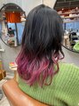 前回の毛先ブリーチのところにピンクバイオレットの酸性カラーをオン。発色良くガラッとイメチェンで気分が上がります!