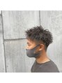 全体的に短めのアップバングスタイル。サイド、バックは刈り上げ。量をしっかりとった軽めのスタイル。ツイストスパイラルパーマをかけ、セットが楽で普通のパーマよりももちが抜群にいい。質感も全然違うので、周りと差をつけたい方にオススメです!