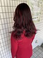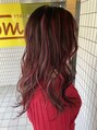 ブリーチでハイライトのベースを作り/ハイライト以外は暗めの赤茶でカラーリング/ハイライトは赤のマニキュアをメインで仕上ました