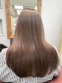 髪質改善カラーでブラウン系のお色味でツヤが出るようにしました。明るさをコントロールしてあげると動きが見えやすく軽く見えるので、暗くて重く見えるのが嫌という方やしっかり染めた感じをあまり出したくなく自然な感じにしたいという方にもオススメです。