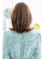 くせ毛風のゆるやかな質感でフェミニンな雰囲気に仕上げたふわミディ。肩のラインの外ハネカールでくびれを作って色っぽく。斜めバングや厚めバングで目力UPしたり、耳かけしても大人かわいい。サイドの前下がりラインで輪郭カバーして小顔見せ効果バッチリ☆