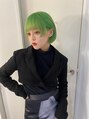 ミントグリーン/ハイライトカラーケアブリーチ/切りっぱなしボブ