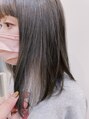 1回ブリーチのベースに重ねたスモーキーなベージュカラーです。根本はあえて触らずに、そのままのコントラストをデザインとして◎