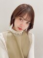 大人可愛い♪ゆるふわボブにちょっぴりカジュアル感をプラス★マッシュベースに小顔カットをMIXさせシースルーバングと愛称抜群!カラーはイルミナカラーグレージュで柔らかさと艶感UP!耳かけスタイリングもOK!