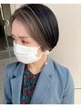 バングカラーでメリハリ。シンプルボブがより素敵になります。切りっぱなしなのも可愛い。かきあげたとき、耳掛けしたときより目立つ範囲の入れ方です。顔周りの白髪ぼかしとしてもおしゃれでかわいい。