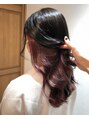 インナーカラーをパープルピンクにして表面は艶のあるブラックブラウンにしました!!人気のインナーカラーは派手になりすぎずオシャレカラーにとてもおすすめです♪