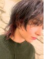 ウルフのレイヤーを活かしたインナーカラー!全体ダークグレーにインナーピンクで逆の色味でも相性抜群◎耳にかけたりするとチラッと見えて可愛いです!!