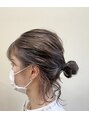 ボブアレンジ。全体を波巻きしてからナプラのバームを馴染ませ、後毛を残しながら 後ろでシニヨンに。バランスを見ながら引き出して少しルーズに崩して後毛を波巻きして完成です。