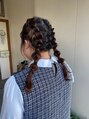 お出かけ前にツインアレンジ(^ ^)編み込みが表に出てバレッタやリボンが無くても可愛いアレンジに(o^^o)もちろん、バレッタやリボン、ゴールドピンなどをつけても可愛いです♪