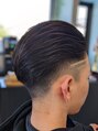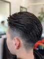 サイド、バックは2ミリからのフェードスタイルです。フロントはアップバングにして、サイドバックに流しました。