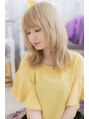 派手に見られがちなハイトーンの金髪スタイルは、くせ毛風外ハネカールのナチュラルセミディでリラクシーな雰囲気。顔周りを明るくして肌色キレイにやわらかく仕上げます。斜めバングや厚めバングで目力UPしたり、前下がりで小顔見せや耳かけも大人かわいい。