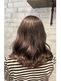 もとのベースが明るい髪をツヤ感のあるベージュでトーンダウンしました。無造作なカールが可愛いスタイルです♪