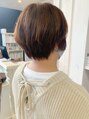 冬に大人気な赤みカラー。ピンクがしっかり入ったツヤツヤカラーです。透明感もしっかりあります。襟足スッキリなショートヘア。タイトに表面はふんわりしたスタイルです。耳かけもできるので耳かけしてピタっと仕上げもありです。