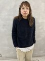 ミディアムヘアのランダムパーマスタイル。全体はふんわりとカールをかけ、ポイントでしっかりカールをみっかしたのがポイントです。