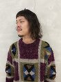 前髪オン眉の個性的なミディアムグランジパーマ。ランダムに大きめカールと小さめカールをミックスしたスタイルはキレイになりすぎずに、強弱のある自然なパーマスタイルに。
