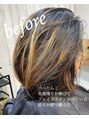 前髪長めのショートスタイル*白髪の出始めに、白髪染めないデザインカラー☆☆☆ブリーチを使っています。骨格にに合わせたショートスタイルは、セットした時に毛束感やボリュームが出しやすいようにベースカットで調整しています*