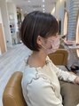 丸みのあるショートボブです。乾かすだけで丸みのあるシルエットに!ベージュ系ハイライトとの相性も良いです!耳にかけても可愛いです(^^)