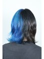サファイア系の青と黒のツートンヘア。ツートンカラーは色も混ざりづらいので、色維持もしやすいです!