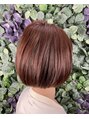 アゴラインのクラシカルな美シルエットの内巻きボブです。カラーは全体を8トーンのピンクブラウンベースにオレンジを混ぜてベースを作り、ブリーチなしのハイライトで立体感と束感をプラス♪ニュアンスよりのハイライトで透明感をアップさせてます(^^)