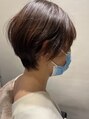丸みショートボブスタイル。ヘアカラーは抜け感のあるベージュ系です。顔まわりのもみあげの部分をブリーチして個性をプラスしております。