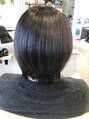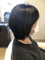 長さは変えないで、クセがあるので毛量調整をして ボリュームを抑えました。白髪カバーをしてアッシュブラウン系のカラーにしました。