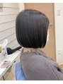 カラーはアルティストカラーを使用しています♪暗めなベージュベースにグレー系バイオレット系を補色にし明度を下げています!ブリーチカラーだと低明度でもクリアな透明感が出ます♪