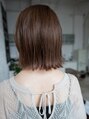 ワンレングスの切りっぱなしボブのスタイルになります。 外ハネにワンカールするようにスタイリングをした際に首元がスッキリ見えるように量感を調節しながらカットをしています。カラーは暗過ぎず、明る過ぎない透明感のあるブラウンです。