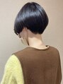 サイドは耳にかけずに少し耳たぶ出るくらいの長さで真っ直ぐなラインを強調したカット!襟足はタイトに。刈り上げないギリギリでスッキリ。色はイルミナカラーで暗艶髪。