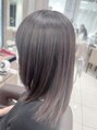 艶やかなアッシュブラウン。グレイカラー(白髪染め)をしていて、ややダークトーンの仕上がりでも透明感がポイント。色味を調節してほどよく透けるイメージに。髪の毛にも保湿が欠かせないこの時期、頭皮の保護も叶うキラ水美髪はエイジングケアに最適です。