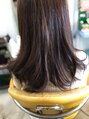 冬に合った感じのブラウンアッシュ系のカラーと柔らかい感じの毛先をイメージして作ったスタイル。毛先を軽く巻くだけで優しい感じに。