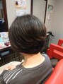 ショートボブのパーマスタイルです。襟足はすっきりとカットし、サイドは横に流せるようにふわっとボリュームの出るパーマをあてました。