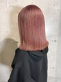 ブリーチ2~3回してます。毛先に暗染の残留がありましたが、しっかりと抜いてピンク系で統一してます。色落ちで残留が残らない透け感のあるピンクに!
