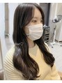透明感たっぷり暗めアッシュブルー☆暗すぎないので重く見えず柔らかいカラーです^^♪顔まわりも流しやすいように☆おろすとくびれっぽい印象に☆