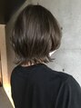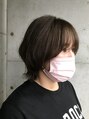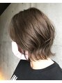 外ハネレイヤーミディ。顔まわりはマッシュカットしてあるので、かわいい印象です。カラーは明るめのオリーブベージュです。