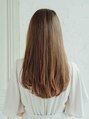 誰からも愛されるワンカールロング。ストレートパーマでパキッとしない自然なストレートにします。ミルクティベージュでツヤ感をプラスして、顔周りは小顔似合わせカットのシースルーバングと表面にレイヤーを入れ動きが出るようにします。【いわき】