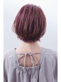 ワンブリーチで色を抜いた上から、カシス系の深いお色味をかぶせています。スタイリングにセラムとオイルを1:1で混ぜて使用。セミウェットな質感がかわいい、人気のボブです♪※ブックマークをしてカウンセリング時にご提示いただくとスムーズです♪