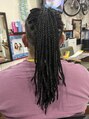 ブレイズヘアーとツーブロのカスタムヘアーモデルはショートヘアをエクステでジョイントしました。