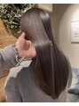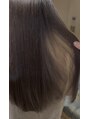 もともとブリーチ履歴のある髪にあえて、ビターなグレージュを重ねて作る艶カラーです。ケアプロトリートメントととも相性抜群でブリーチ毛とは思えない艶感でます。