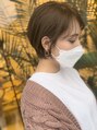ミディアムヘアからショートヘアにスタイルチェンジ!丸みを残して女性らしさをそのままに、誰でも扱いやすいショートに!ブリーチをして、明るめベージュでより可愛く!ショートとハイトーンの相性は抜群です!
