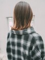 カラーはブリーチハイライトにオンカラーでアッシュベージュカラーで透け感と抜け感を出してます。レングスは外ハネすると肩につくくらいです。表面にレイヤーを入れているのでシルエットがややひし形で小顔効果!!