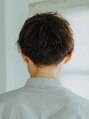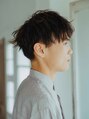 耳周り、バックをすっきりと短くしたさわやかなツーブロックのアップバングスタイルです。前髪は、黒目の上からしっかりとあげることでバランスの良いスタイルに。全体の毛先は無造作に動かして毛束感をプラスしています。[高崎/高崎駅]