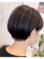 カットは丸さが可愛いマッシュショートに♪ラインを少し前下がりにしているので、普通に乾かすだけで後ろの丸みとキュッとした襟足のメリハリが出ます♪